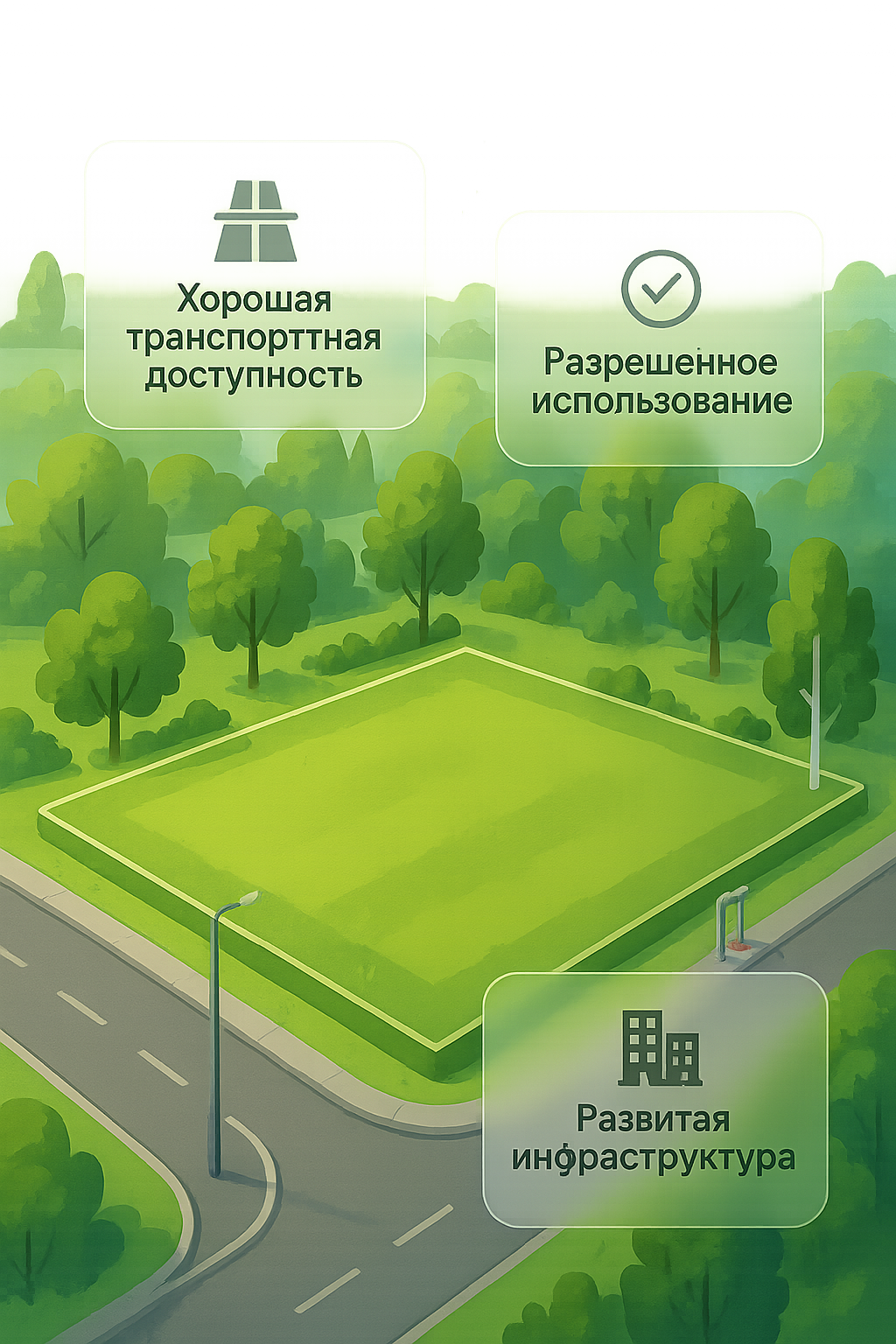 - ✅ Назначение земли - для ИЖС, коммерческой застройки, сельского хозяйства или промышленности;